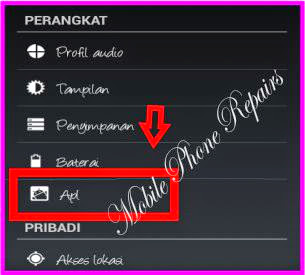 2. Setelah anda membuka menu setting tersebut akan terlihat seperti dibawah ini, lalu buka "Apl" seperti gambar dibawah.