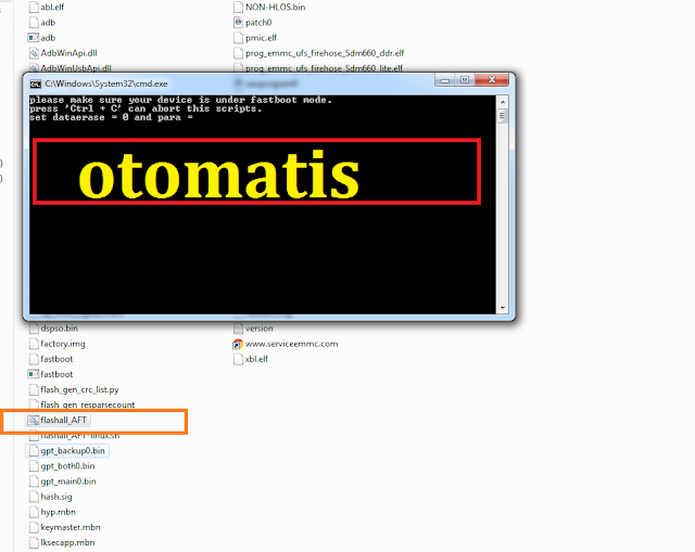 Matikan smarphone,yg sudah terlanjur hang nir mampu dimatikan ya sudah paksa dengan cara tekan tombol power secara usang.sesudah layar mati tekan tombol atas sembari di tahan lalu hubungkan dalam personal komputer memakai kabel usb,sesudah masuk mode fastboot,masuk pada file yang telah pada extract tersebut jalankanflashall_AFTdengan cara klik kanan run as administrator